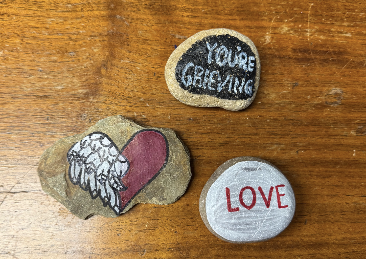 Offer choice of painting a stone to commemorate bond with loved one or reflecting on their grief journey.