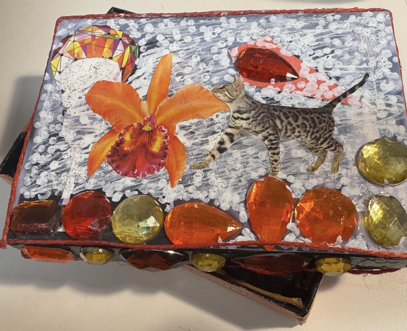 This directive helps clients externalize, honor, and safely “hold” aspects of their grief. Transforming a recycled box or container through collage, painting, and mixed media allows clients to symbolically create a space where their grief can rest. The focus is not on “getting rid of” grief, but on acknowledging its presence, understanding its messages, and exploring emerging needs.