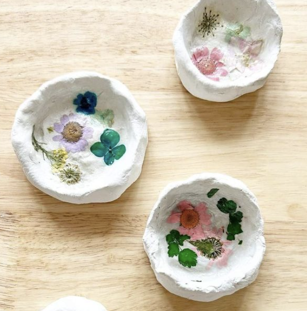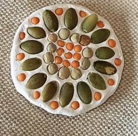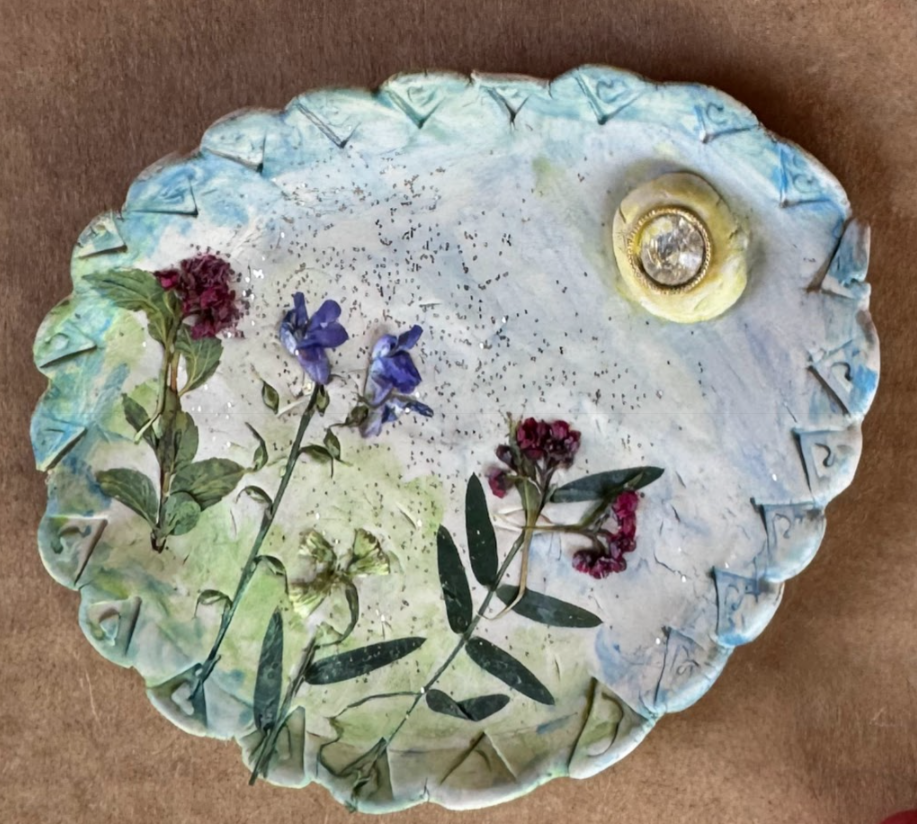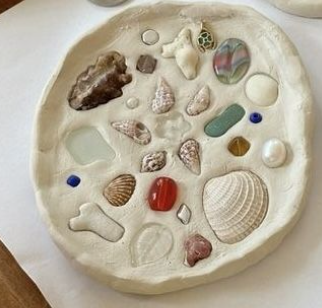 Patient can press leaves, petals, shells, etc. into the surface of the clay.